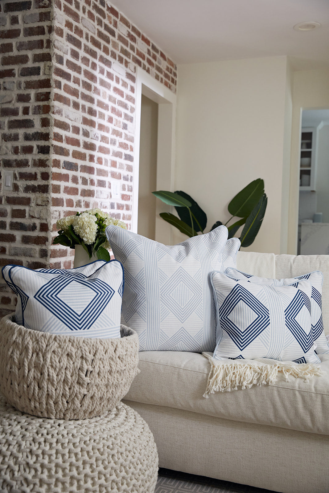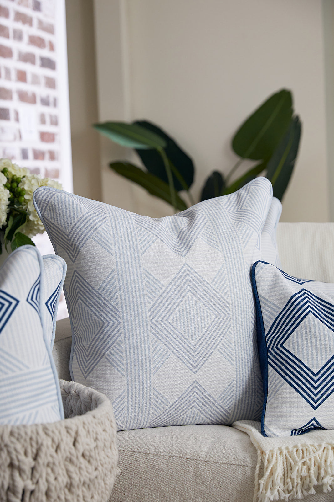 Our Mod Geo Diamond Pillow is inspired by modern design and clean lines. With various shades of blue, this pillow is sure to pop in any space. It also creates an impact with its 22 x 22 size. In a substantial twill-like woven fabric, we added a complementary welt. Perfect for styling on your sofa or bed!