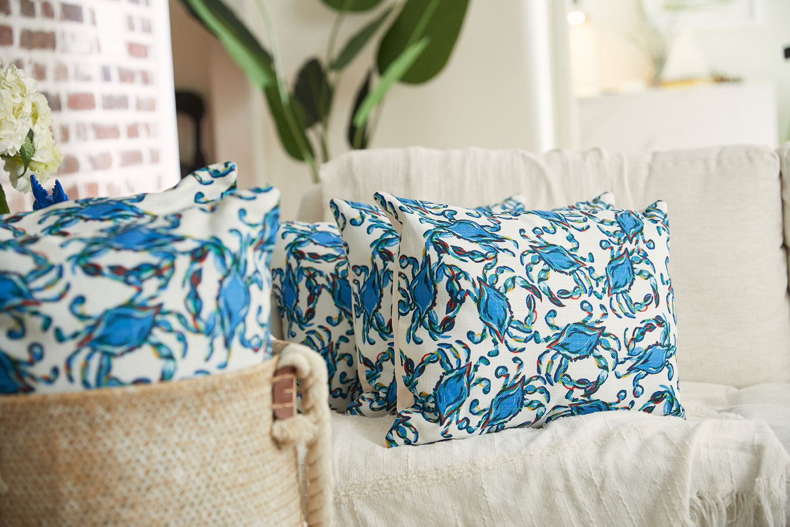 The Coastal Collection: Crab Craze Shades of Blue Lumbar Pillow