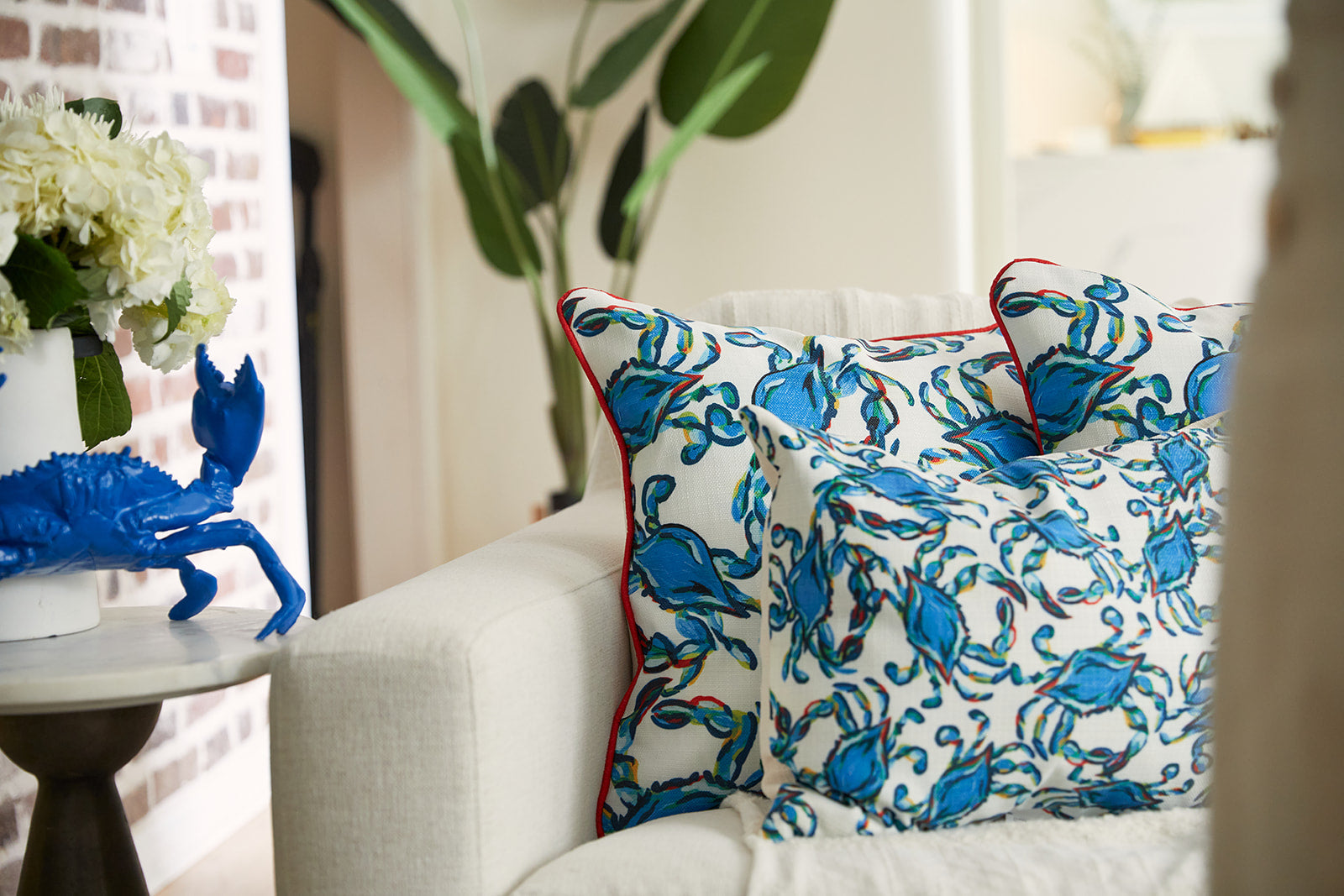 Our most popular print, now in a pre-filled lumbar! Designed to pair sew well with our Crab Craze Shades of Blue Pillow.