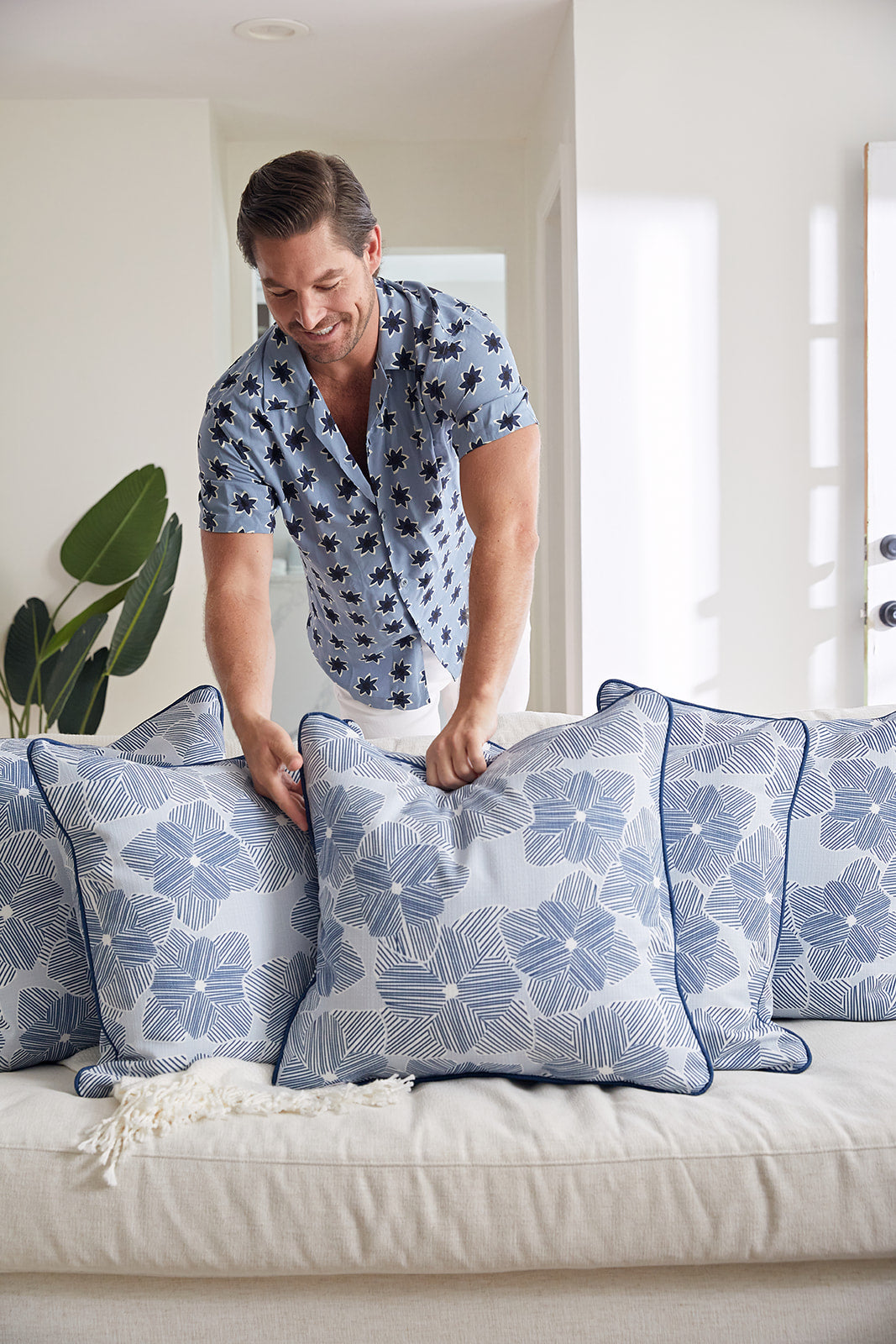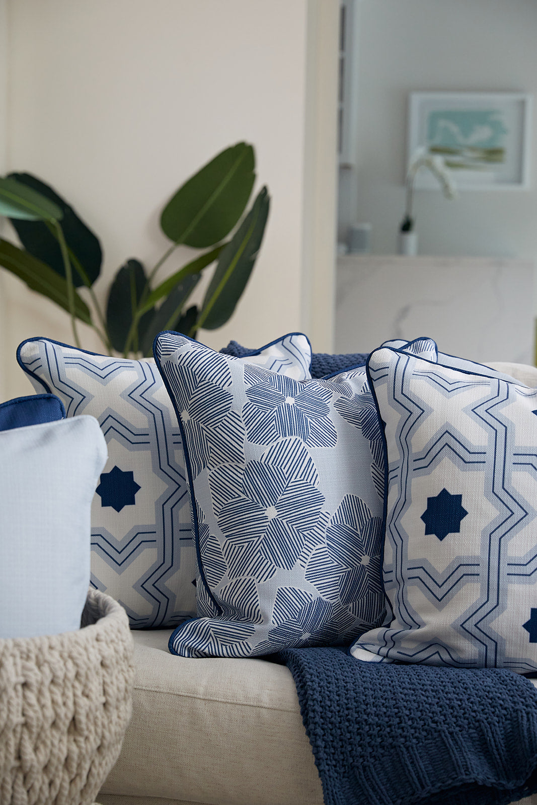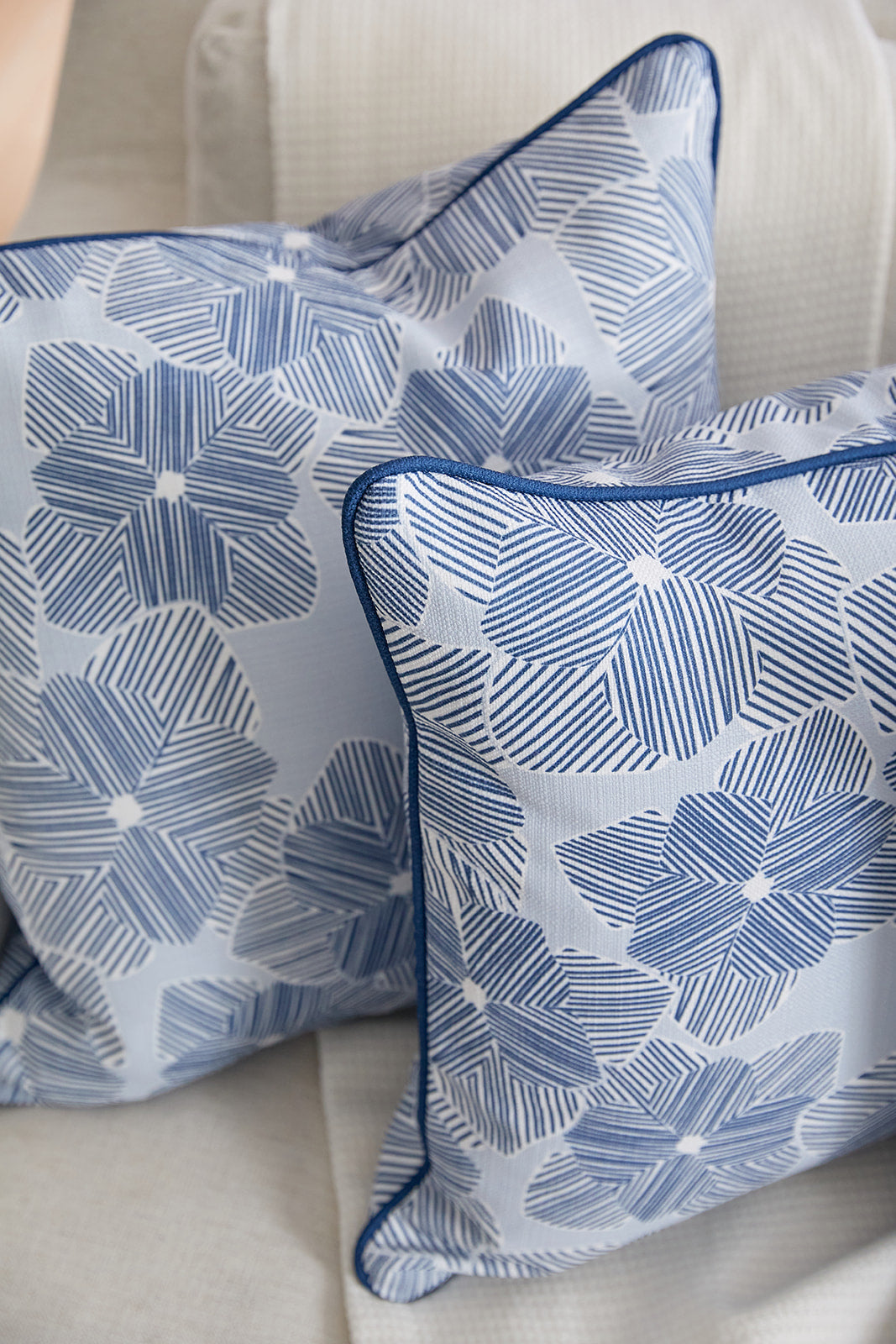 Our Mod Flora Pillow delivers a pop of pattern with modern flair. With contrasting shades of blue, this pillow is sure to shine in any space. In a substantial twill-like woven fabric, we finished this pillow with a complementary welt, but bold welt.