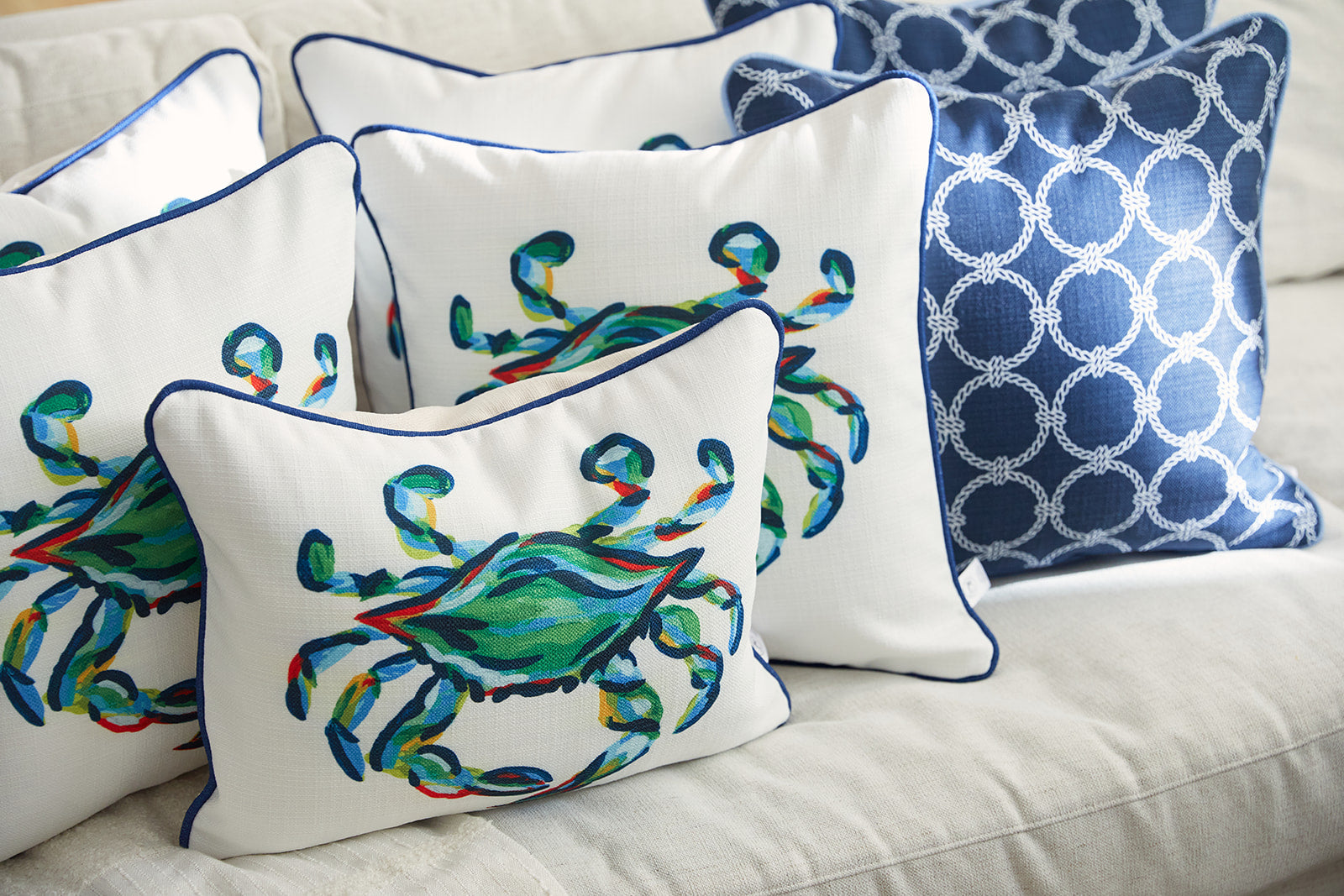 An SDS favorite, now for indoors! Our Coastal Collection King Crab Lumbar Pillow with Navy will bring a touch of the coast to any space. Pairs sew nicely with our Navy Rope Rounds Pillow + our King Crab Pillow with Navy.