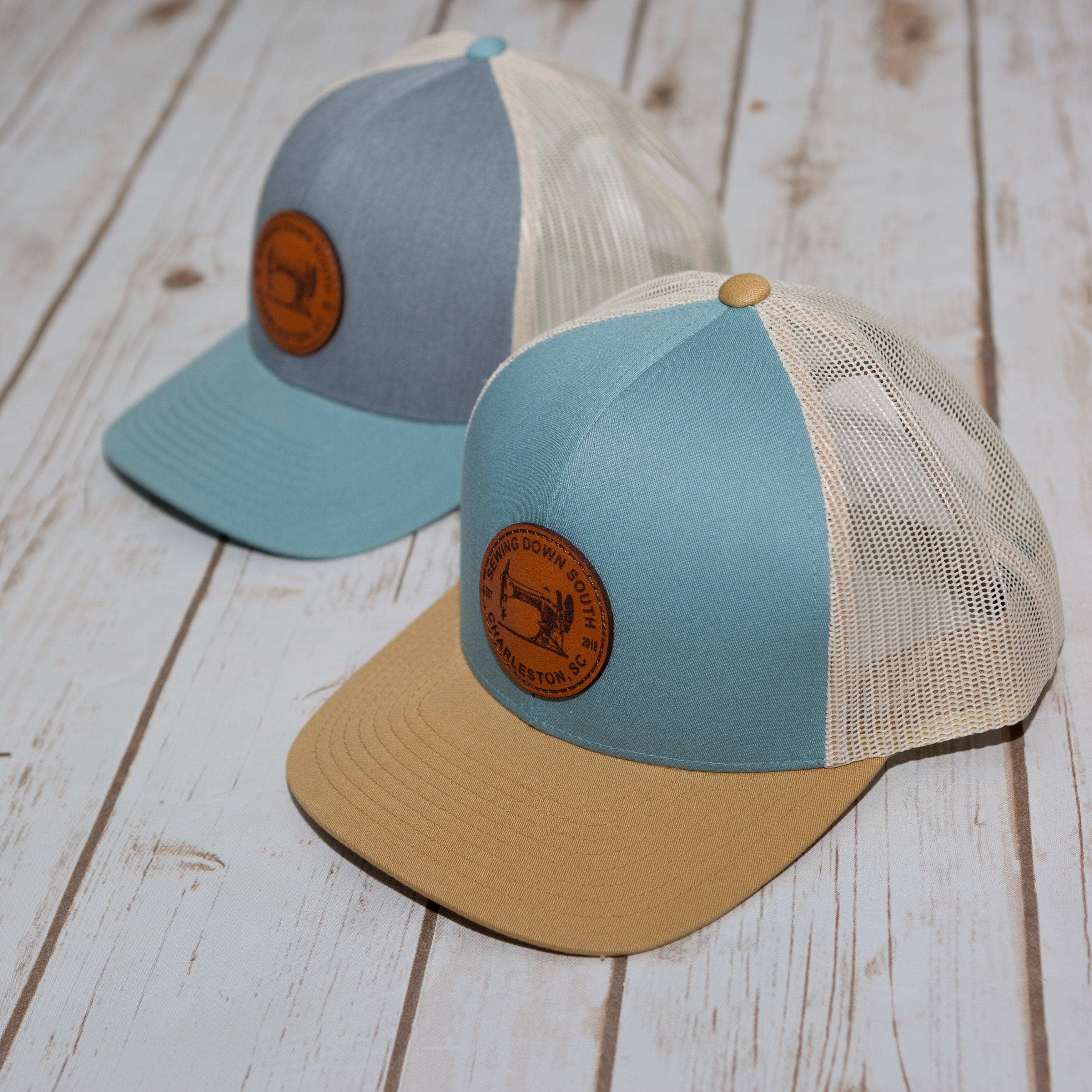 Represent in our updated vintage logo! Elevated with an English Tan leather patch + attached in a coordinated stitch.