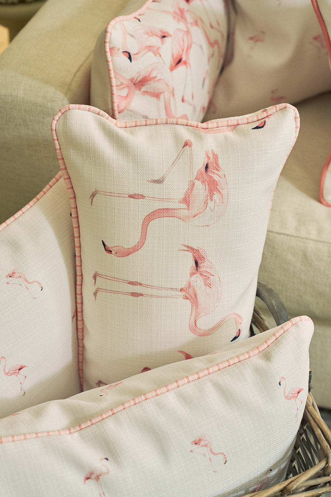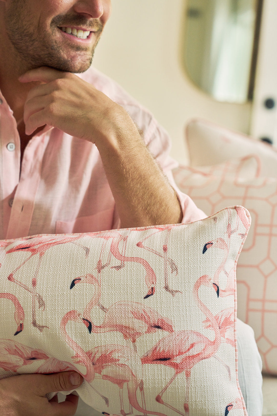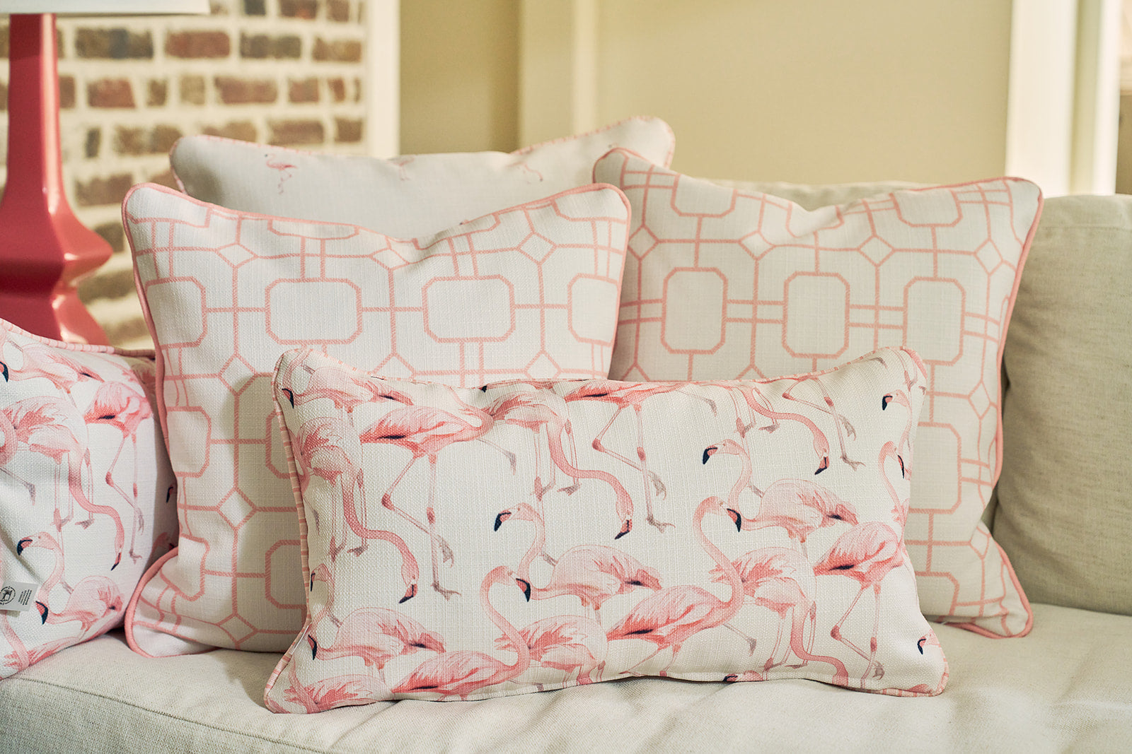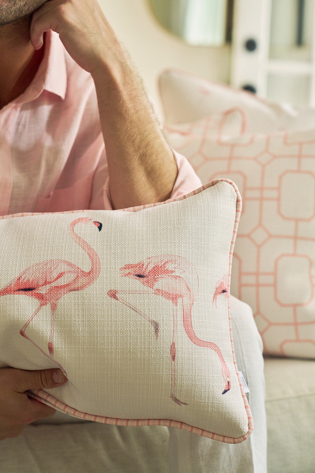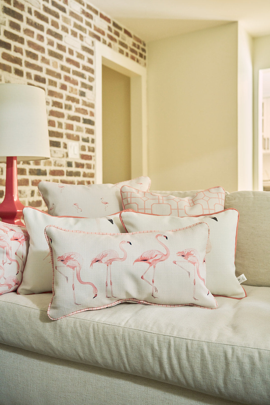 With its whimsical, hand-drawn flamingo design in soft blush tones, this pillow brings a breezy coastal charm to any room. Whether it’s lounging on your sunroom bench, brightening your bed, or adding a tropical touch to your favorite chair, it’s the perfect statement piece to liven up your space. This pillow also features our new elevated pink stripe welt that coordinates with the pinks and corals of our flamingo print.