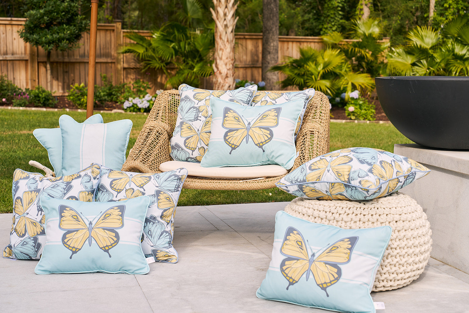 We've got butterflies over our new Butterfly Scatter Outdoor Pillow. This double-sided pillow features our scattered butterfly print on both sides.