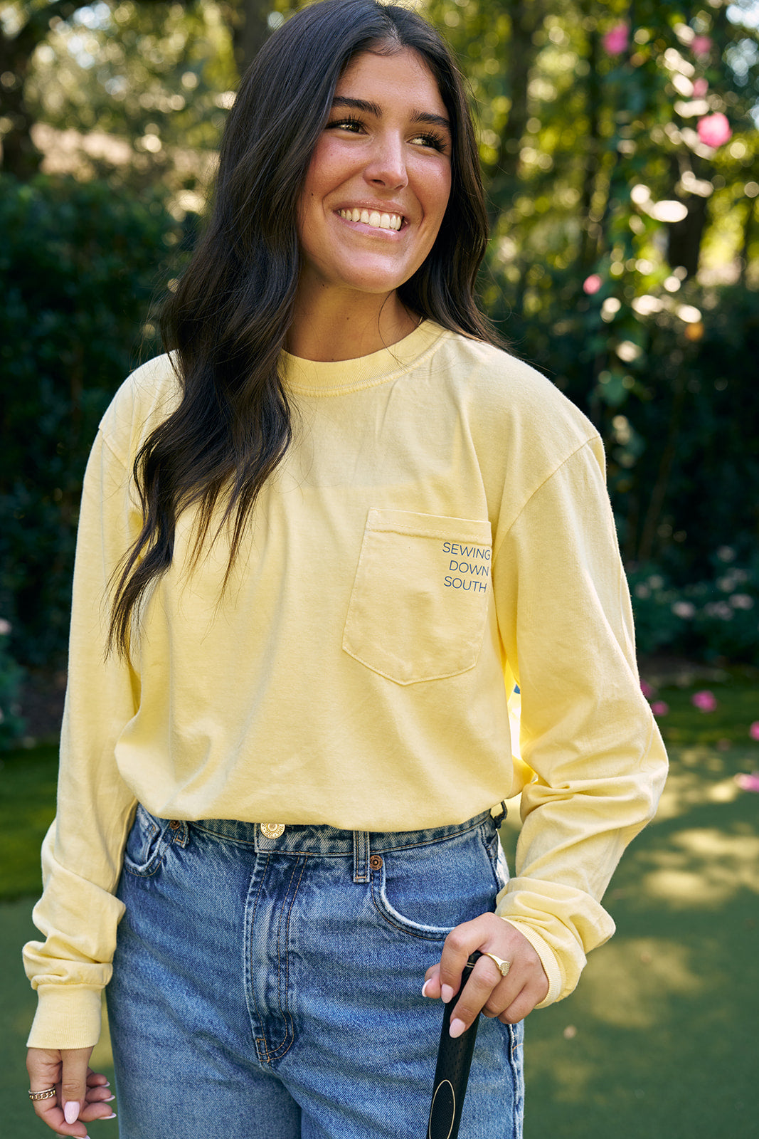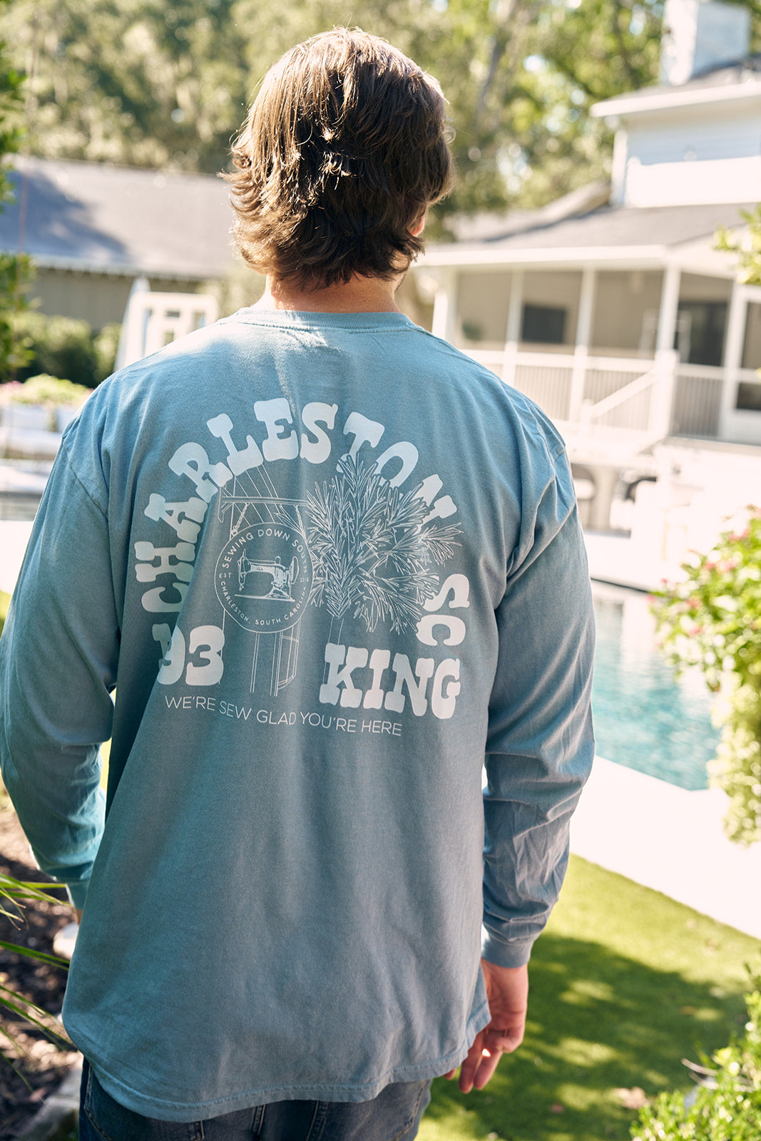 If you love SDS, our Flagship store and Sewing Down South - this is the shirt for you. This all new long sleeve crew neck features a sketch of our iconic Charleston Storefront.