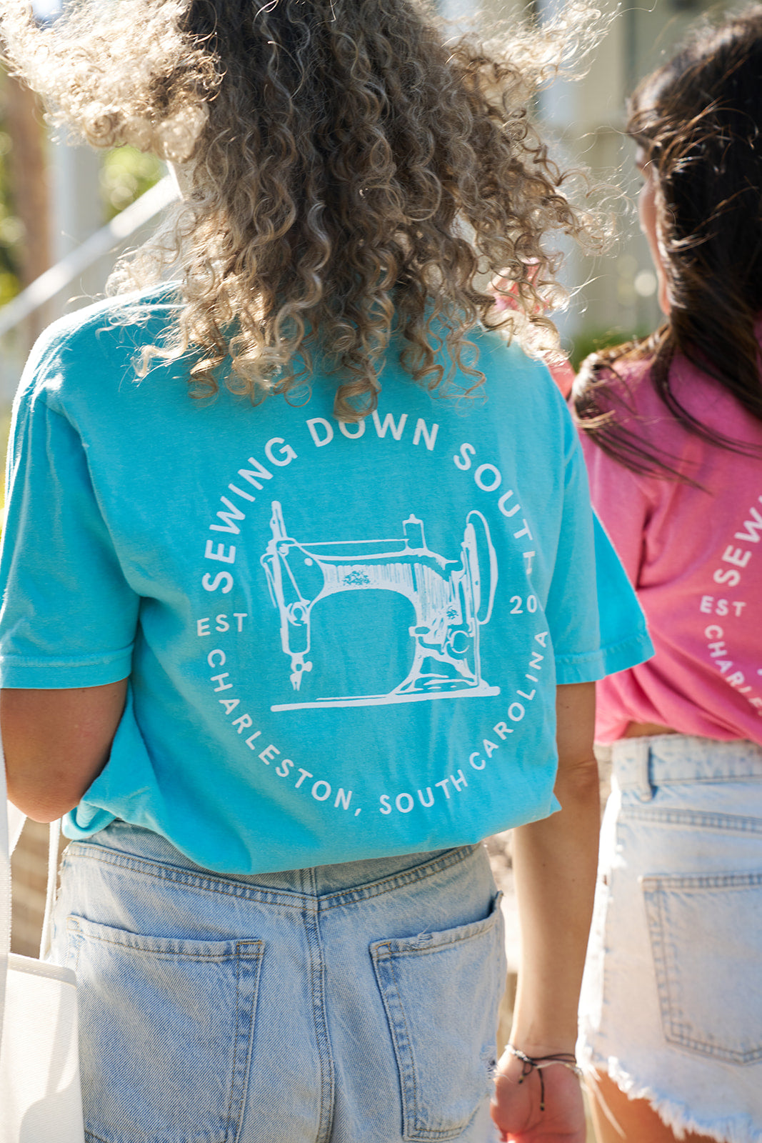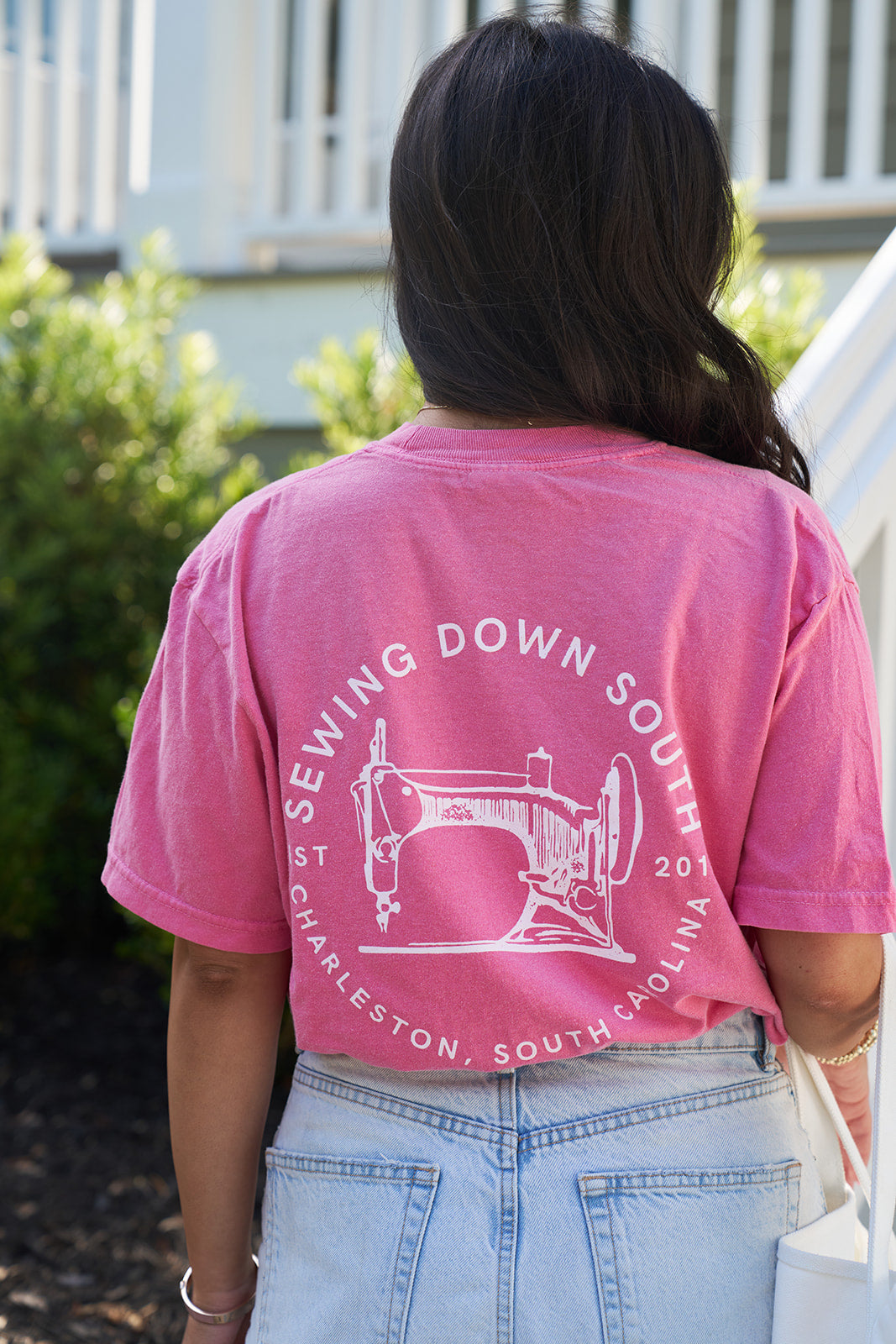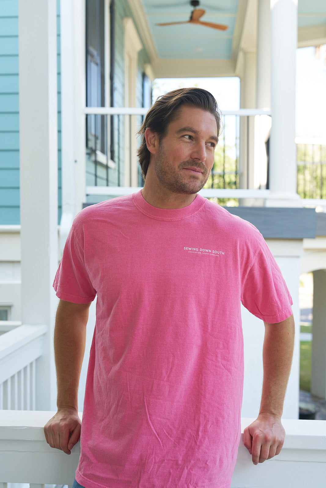 Represent Sewing Down South coming & going in our *SEW NEW*, inspired by Rainbow Row, comfy tees.