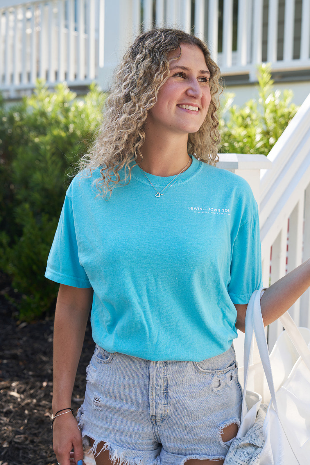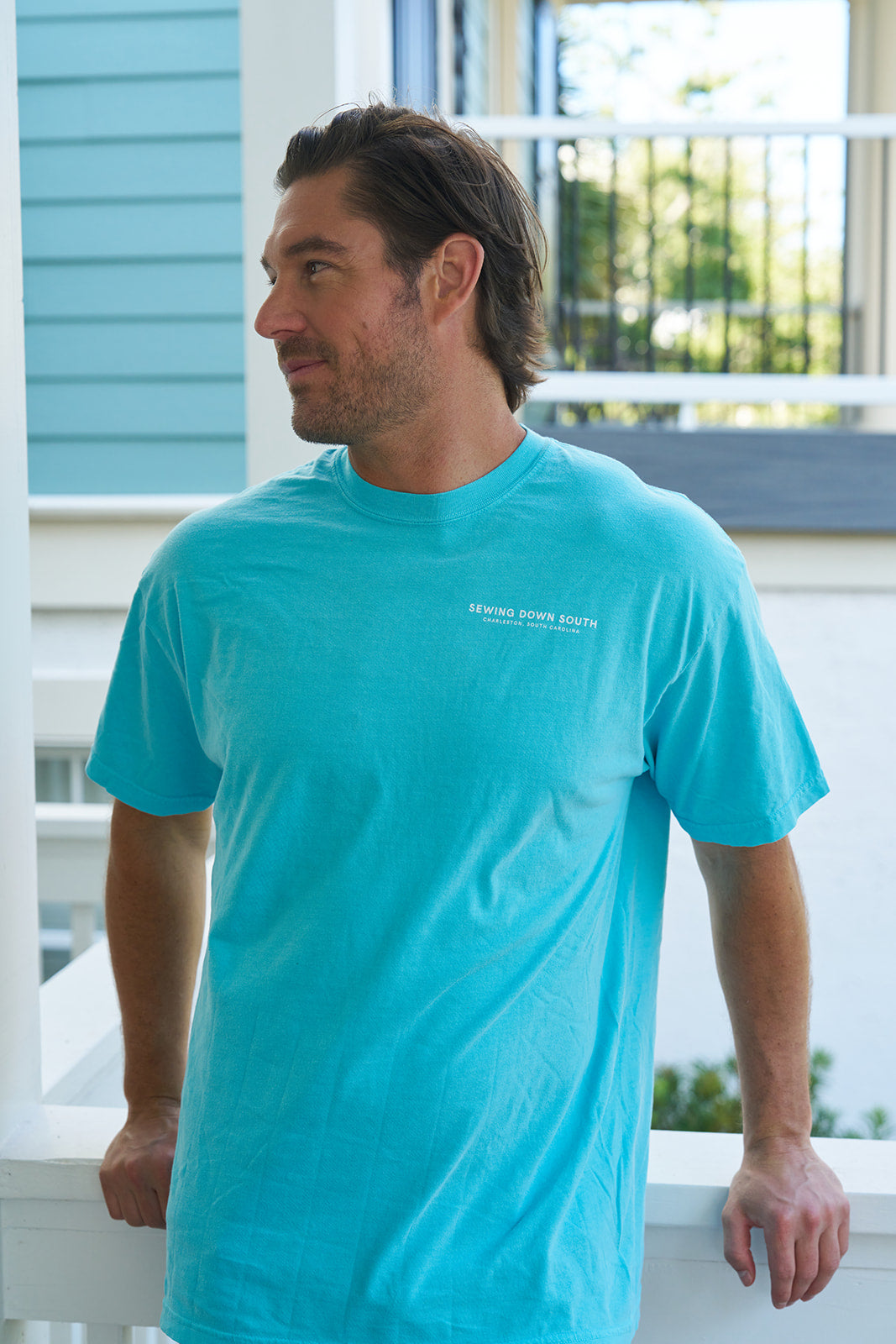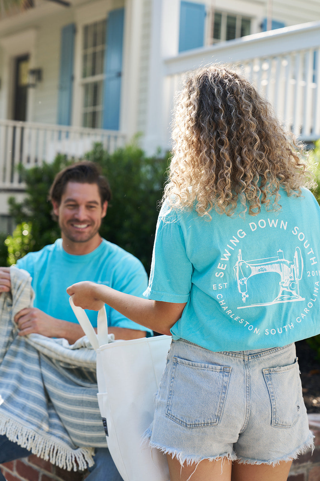 Represent Sewing Down South coming & going in our *SEW NEW*, inspired by Rainbow Row, comfy tees.