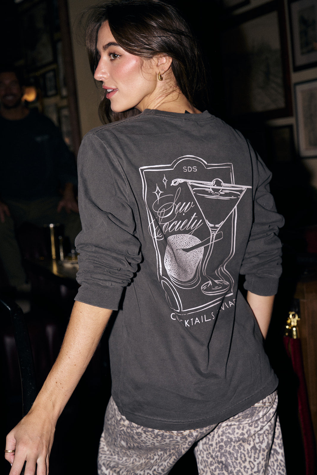 Elevate your holiday style with our Cocktails & Caviar Long Sleeve Tee. Luxe, cozy, and effortlessly festive - this tee was made for champagne toasts, glittering lights, and nights that sparkle just a little brighter.
