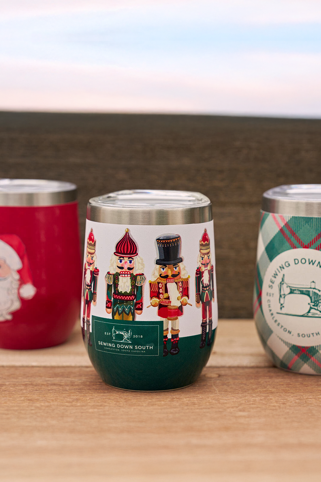 Included in Variety Pack: 1 Plaid Wine Tumbler, 1 Santa Wine Tumbler, 1 Nutcracker Wine Tumbler