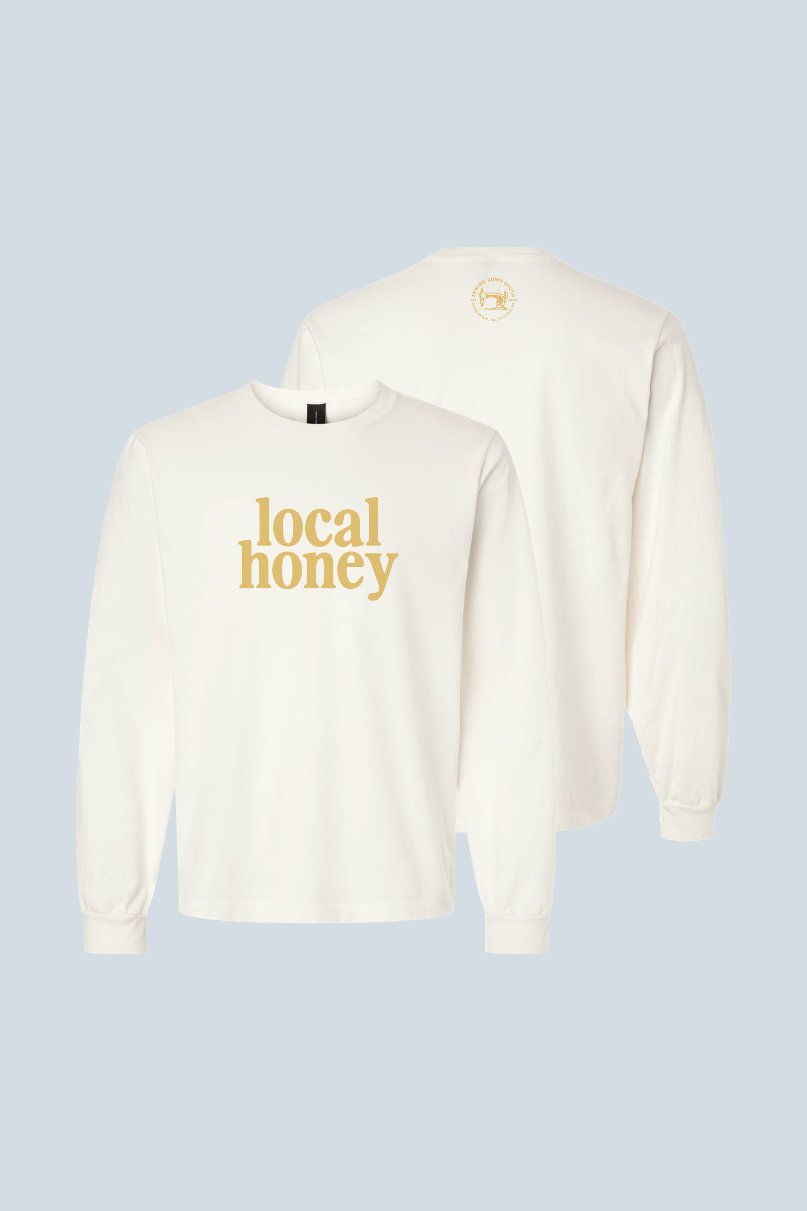 Sweet, charming, and just a little unexpected - kind of like Craig's beekeeping era. Our Local Honey Long Sleeve Tee is a tribute to the most delightfully wholesome hobby: Craig harvesting his very own honey.