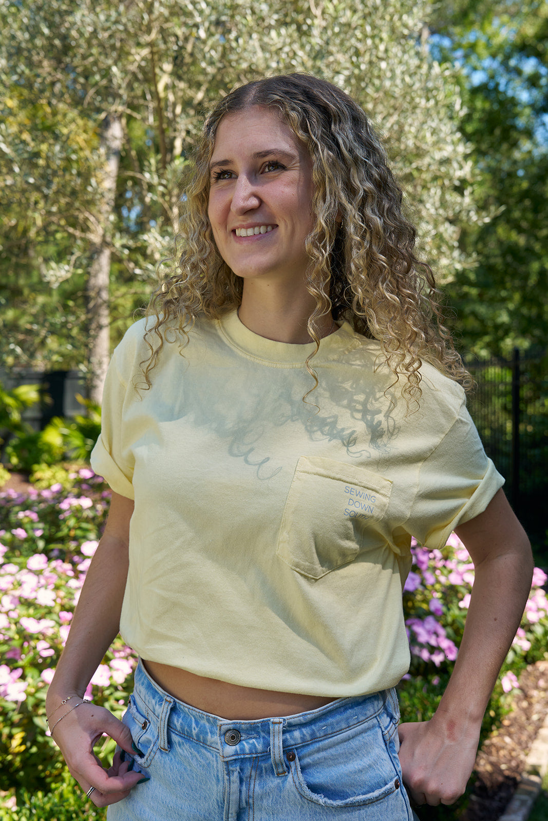 If you love SDS, our Flagship store and Sewing Down South - this is the shirt for you. This all new short sleeve crew neck features a sketch of our iconic Charleston Storefront.