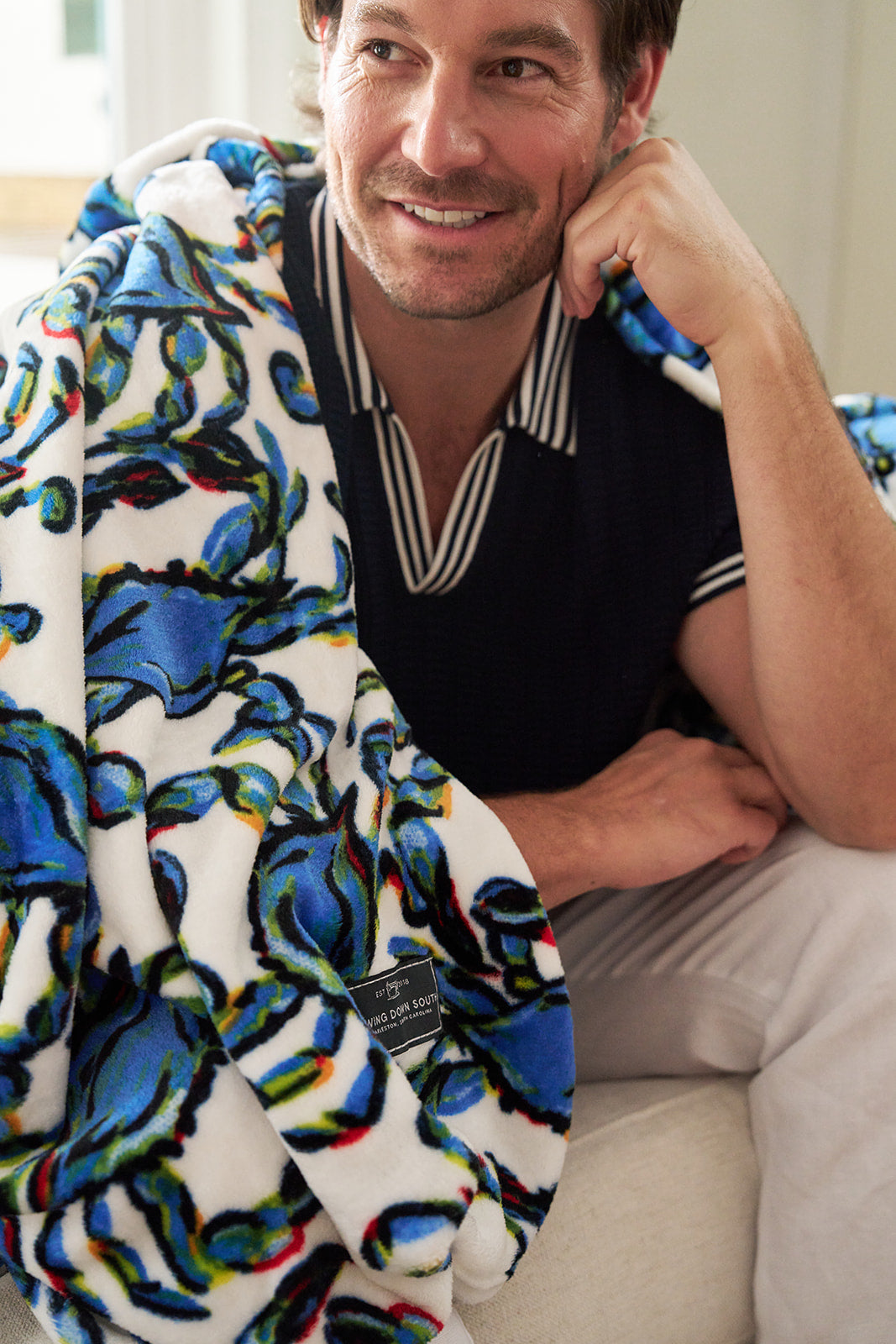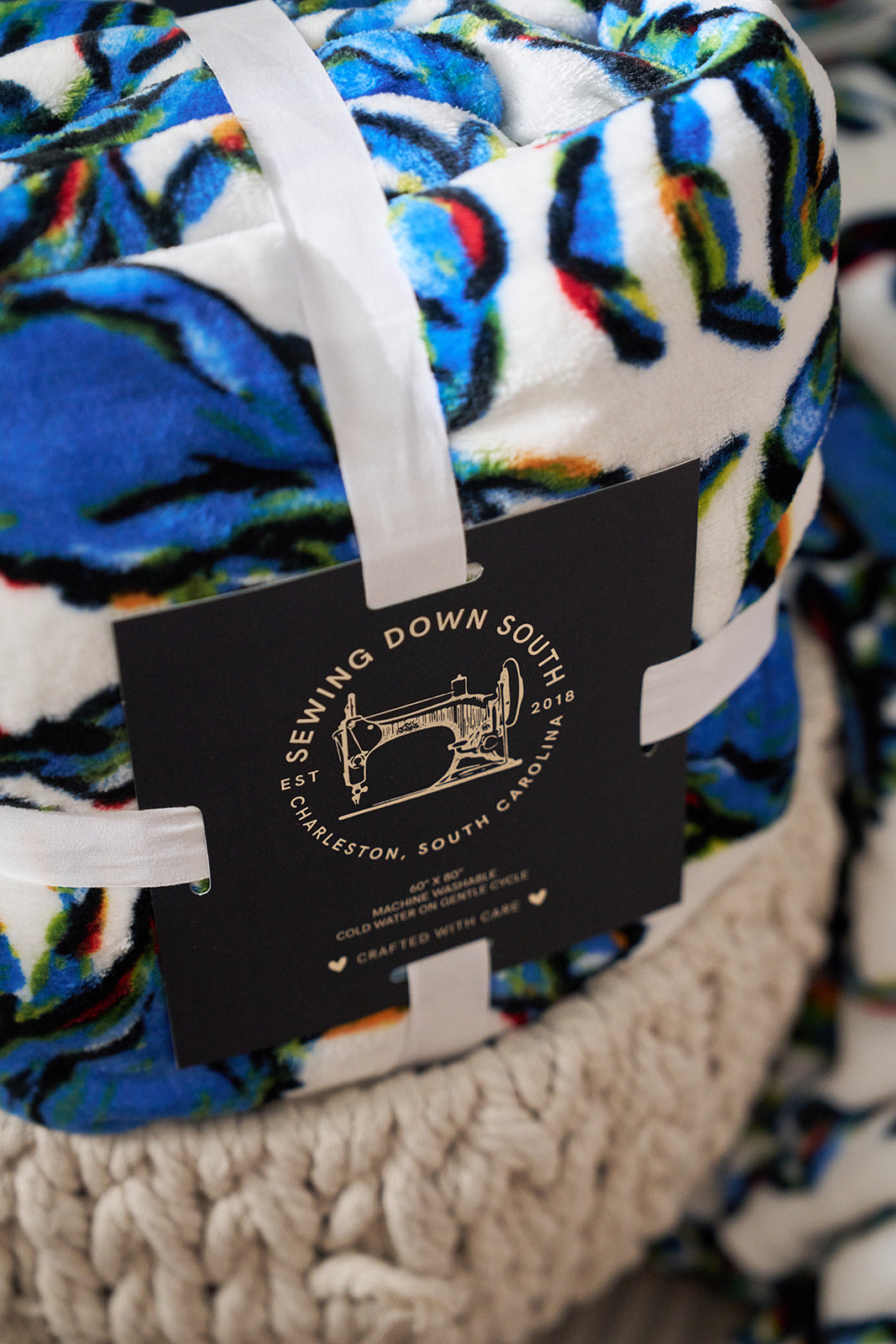 Our Crab Craze Shades of Blue Blanket is inspired by one of our most popular Sewing Down South prints, and is sure to bring some coastal chicness to your abode - all while keeping you comfy and warm.