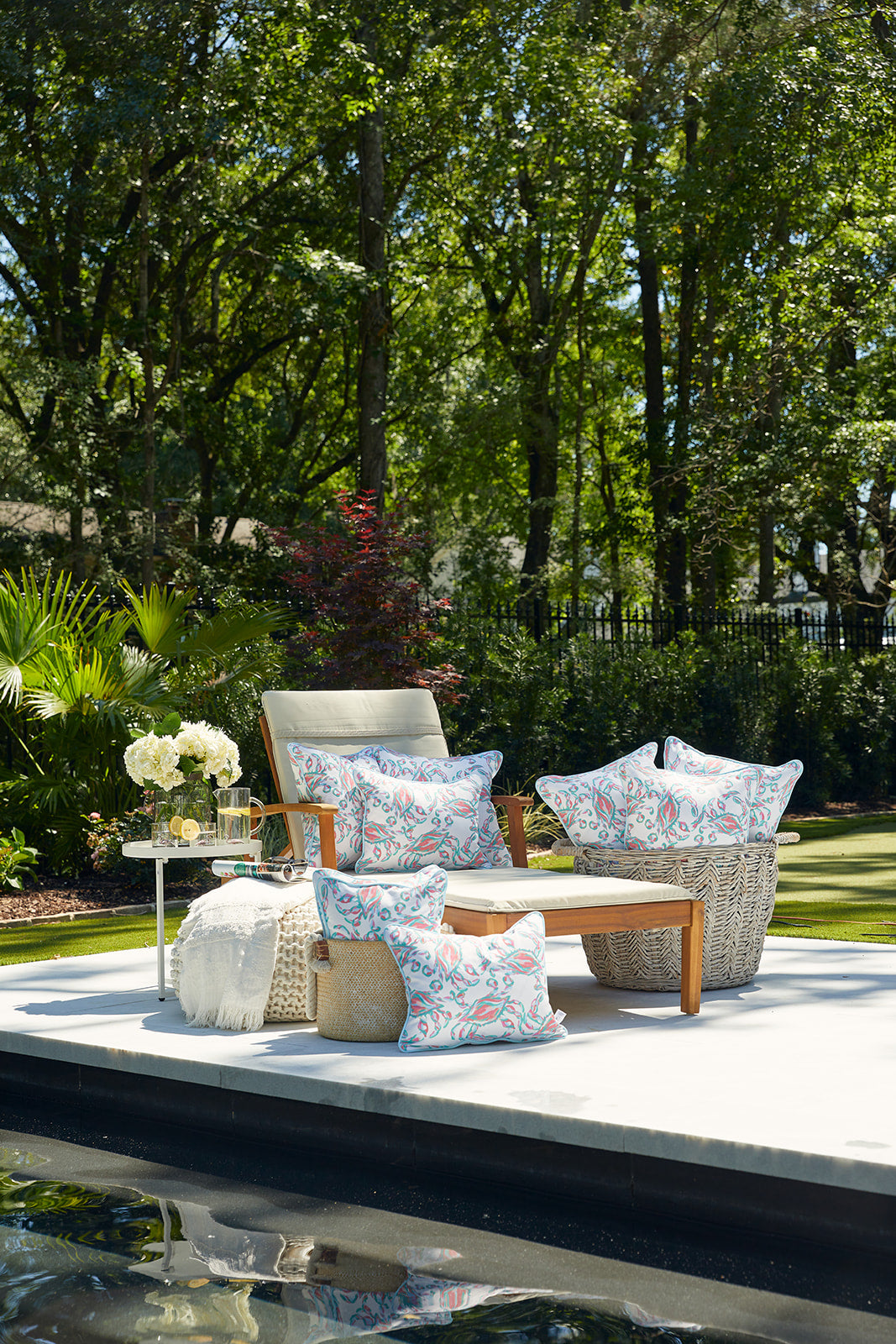 Our Coral Crab Craze Lumbar Outdoor Pillow will add unexpected color and brightness to any space. Created with SDS Shield® Outdoor Fabric that is designed for performance, we finished it with a coordinating Carolina Blue welt. Pairs sew perfectly with our Outdoor Coral King Crab Pillow + our Coral Crab Craze Outdoor Pillow.