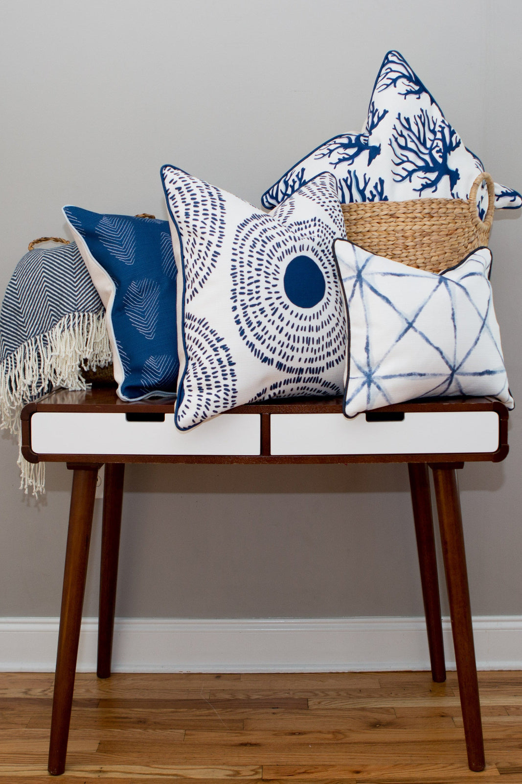 Our Navy Medallion Pillow is inspired by water life from the sea, and creates an impact in a 22 x 22 size. In a substantial twill-like woven fabric, we added a complementary navy welt. Bring coastal chic into your home in a rich fall color!